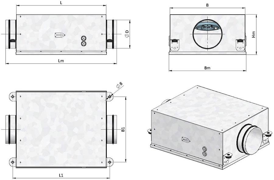 - Удобство в обслуживании: панель для обслуживания вентилятора находится снизу установки