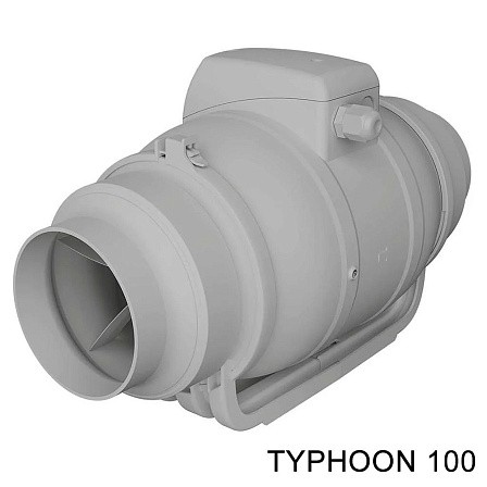 Вентиляторы TYPHOON имеют съемный центральный блок с двигателем, крыльчаткой и клеммной коробкой, которые крепятся к патрубкам хомутами. Данная конструкция упрощает обслуживание. В моделях TYPHOON 100-200 хомуты пластиковые, в TYPHOON 250, 315 - металлические. Корпус вентилятора и рабочее колесо из пластика. Класс защиты IP 44 позволяет использовать вентиляторы во влажных помещениях.