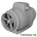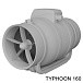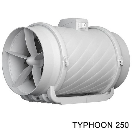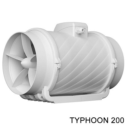 Вентиляторы TYPHOON имеют съемный центральный блок с двигателем, крыльчаткой и клеммной коробкой, которые крепятся к патрубкам хомутами. Данная конструкция упрощает обслуживание. В моделях TYPHOON 100-200 хомуты пластиковые, в TYPHOON 250, 315 - металлические. Корпус вентилятора и рабочее колесо из пластика. Класс защиты IP 44 позволяет использовать вентиляторы во влажных помещениях.