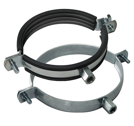 Хомут с резиновым профилем. Способствуют снижению уровня шума, уменьшения вибрации, а также частичной компенсации тепловых расширений.