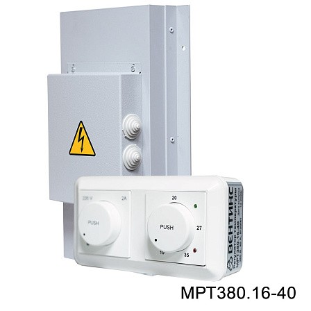 Симисторные регуляторы МРТ380.16-25 (МРТ380.16-40) предназначены для поддержания температуры воздуха и регулировки скорости вентилятора на 220В в системах вентиляции с электрическим калорифером. Поддержание температуры происходит за счет периодического включения/выключения ТЭНов нагревателя. Максимальный ток вентилятора на 220В: 2А.